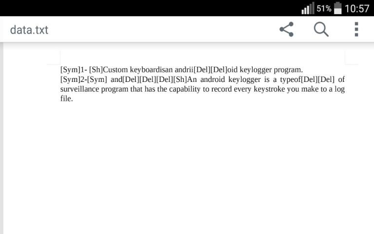 The Custom Keyboard has been supplied in two Basic and Pro versions. In this version (Basic), every recorded keystroke, will be saved continuously in a text file (data.txt) in the Custom Keyboard directory on the external memory (Internal memory on some phones).