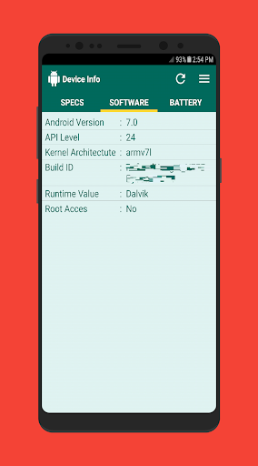 ★ Software: e.g. android version, API level, kernel architecture, build id and runtime value.