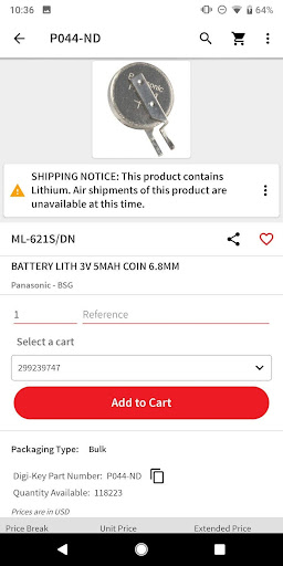 Om het afrekenproces te vereenvoudigen, zullen gasten nu gebruik maken van één winkelwagen. Om inactieve winkelwagens te herstellen, kunnen gasten een Digi-Key-account aanmaken en vervolgens het migratieproces voor winkelwagens volgen vanuit de applicatie-instellingen.