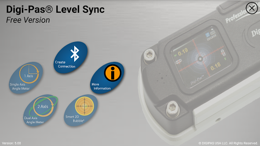Digi-Pas® Mobile App is a user-friendly app, easily installed in any compatible smartphones or tablets. Users can fully utilize the remote wireless Bluetooth mobile connectivity to various Digi-Pas® 2-axis precision digital levelling devices. This highly affordable app instantly empowers machine installers to perform remote 2-Axis simultaneous levelling task, angle measurement and 2D concurrent alignment activities with speed, precision and as a 'one-man-operation' that traditional single-axis digital or 'bubble' levels are unable to match.