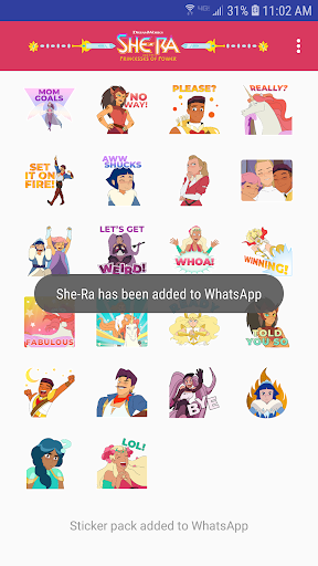 Deze officiële SHE-RA-stickerpakket Hiermee kunt u tientallen authentieke beelden verzenden van de Netflix-geanimeerde tv-serie DreamWorks She-Ra en de prinsessen van de macht. Vergeet Emojis - Stuur je vrienden schattig, grappig, inspirerende stickers van She-Ra, Catra, Glimmer, Adora's Magic Sword, Swift Wind en meer. Werkt ook in WhatsApp!