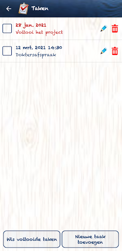 Takenlijst waarmee u naar keuze taken met een vervaldatum en tijd kunt maken,