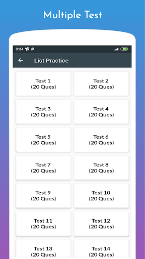 Every test contains 20 questions and each question has 4 answer options.