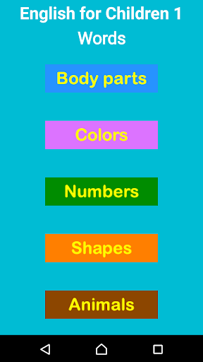 Ayuda a los niños a aprender Inglés de forma divertida. English for Children 1 consta de varias lecciones: partes del cuerpo, colores, números, formas, animales y oraciones cortas (cantidades y adjetivos).
