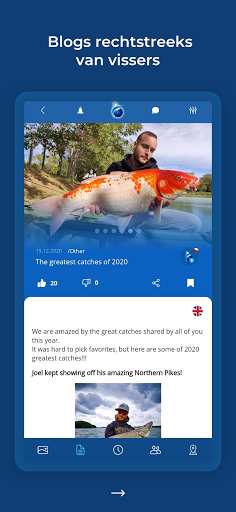 • Volg andere vissers om hun vangsten te zien, hun avonturen te bekijken en hun verhalen te lezen