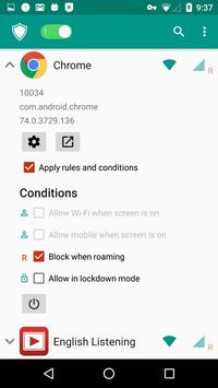 Firewall - Network Blocker Firewall Internet Guard can individually be allowed or denied access to your Wi-Fi and/or mobile connection.