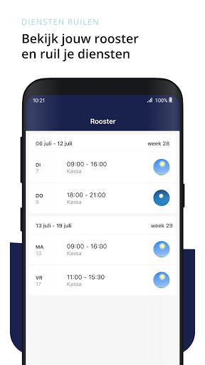 - Het bekijken van je rooster en het ruilen van diensten