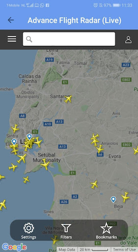The app will automatically focus on your current GPS position. By using your fingers, you can move the map or zoom in and out. Within a few seconds, you will see all air traffic near your location. To get more detailed information you simply click on an airplane and an information panel will appear. Search features and filters are located in the navigation menu and are self-explanatory.
