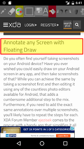 "Drijvende Draw is een kleine Android-app die u biedt Basic On-Screen Tekening-tools die overal in Android werken, ongeacht welk scherm u bent." (XDADVELELPERS)