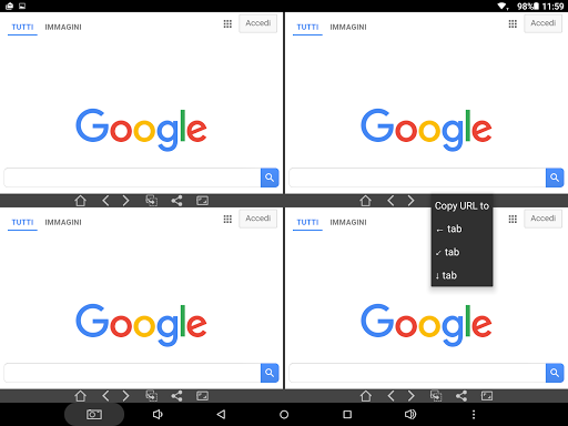 - Visualizzazione in contemporanea fino a quattro schede di navigazione