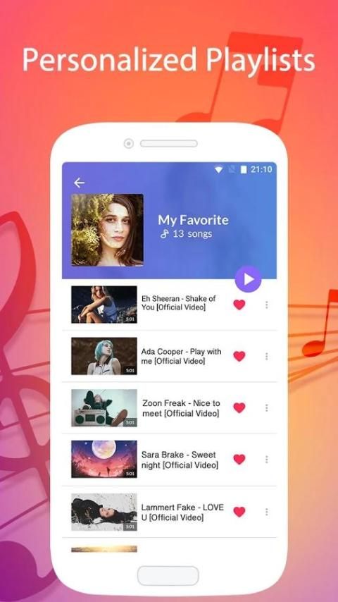 * Personalized Music Playlists & Great Featured Music Playlists: Mark the music you like to the favorite playlist. Create your own playlists, discover new music from several Featured Music Playlist: Music genres like pop, rock, rap, electronic, R&B, and country music videos and browse the daily Top Charts of your country!