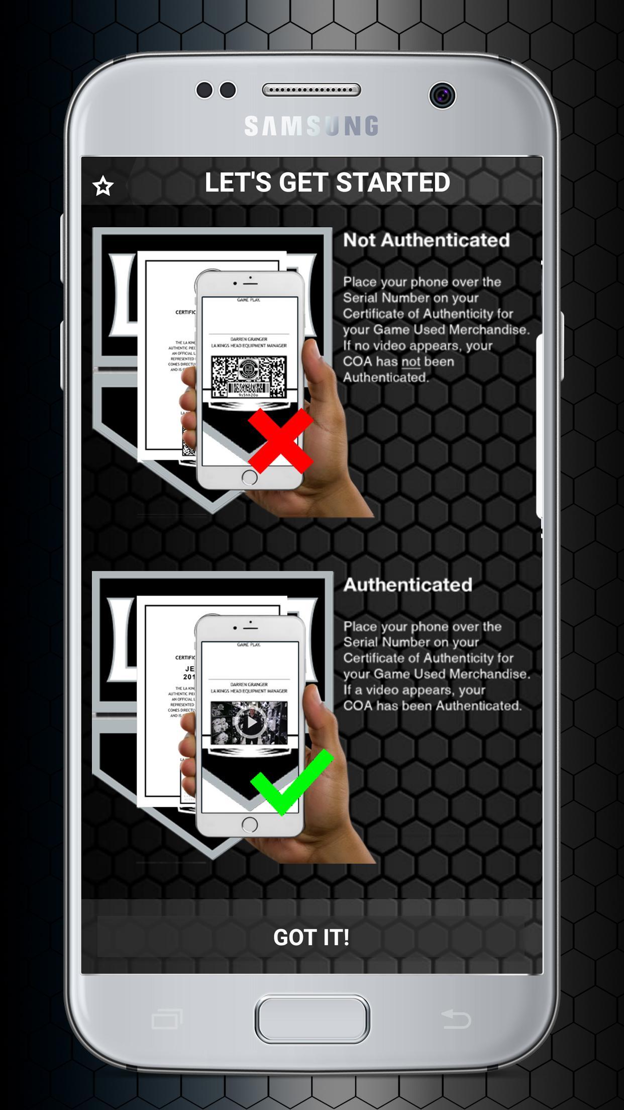 The LA Kings COA Authentication app provides fans the ability to authenticate genuine game used merchandise. When you purchase an authentic Game Used Merchandise item from the LA Kings you will receive a Certificate Of Authenticity with a registered serial number. The Certificate of Authenticity provided will play an augmented reality video from the LA Kings to confirm the items purchased are the real deal!