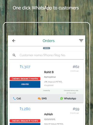 U kunt Garage Management-software gebruiken als Parts Order App of APP of Vendor Management-app, waar u uw leverancier kunt toevoegen en rechtstreeks contact met hen wilt opnemen met SMS, e-mail en WhatsApp
