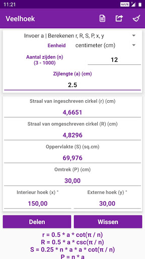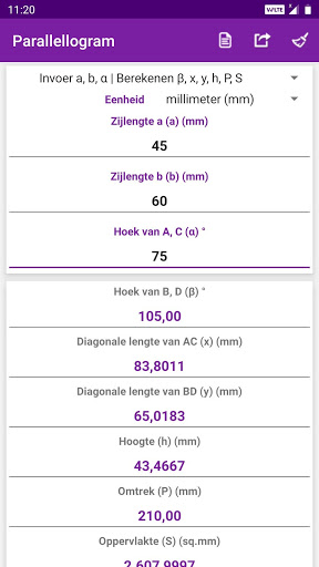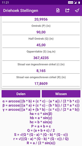 • Berekende waarden en resultaten kunnen worden gedeeld met sociale media, e-mail, berichten en andere apps voor delen.
