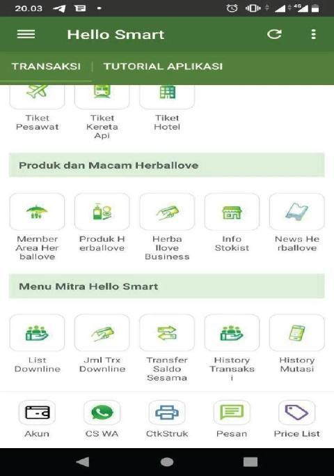 With this application, you can easily check the latest credit prices, see a recap of transaction history, change your balance history, downline activities, chat with customer service, or even check herbalove products.