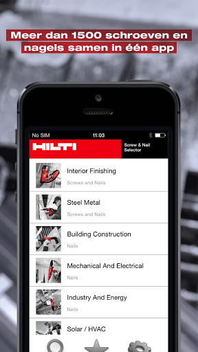 The App Hilti Schroef & Nail Selector biedt bouwprofessionals snel en eenvoudig informatie met betrekking tot schroeven en de bijbehorende gereedschappen. Snel toegang tot het selecteren of zoelen naar de gewenste schroef gebaseerd op diverse parameters en condities waaronder het basismateriaal, bevestigingstype, schroefparameters,...