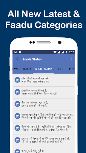 Hindi status is the best app with huge collection of statuses for all occasions for quick update status in Whatsapp,Facebook, Twitter etc.