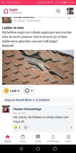 ✔ Ik zoek...: zo kan je bijvoorbeeld een oproep over een verloren of gevonden huisdier met zoveel mogelijk van je buren ineens delen. Of vragen bij wie van je buren je een bepaald item snel even kan lenen.