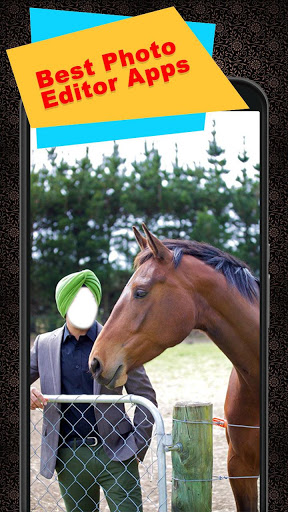 Heb je een leuk idee voor op een stukje mee te zien met een pak op, of welk kleurenpak je bij je past voordat je een dure pak koopt. Paard met man Photo Suit is fotografie en foto-editor-applicatie om je gezicht te maken in het mooie modieuze pak.