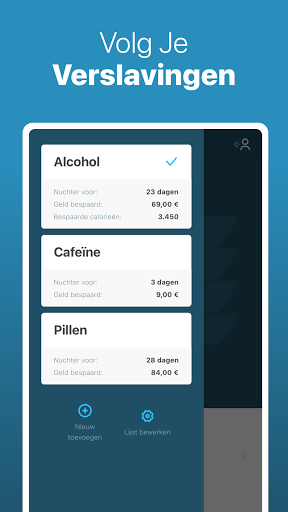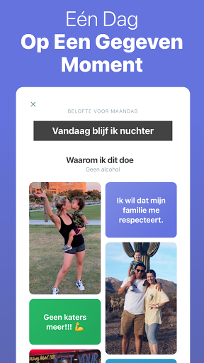 Jij stelt de tijd, je nuchterheidsjubileum, het soort motivatie dat je nodig hebt, de verslaving waar je van af wilt komen en zelfs de eind-van-de-dag samenvattingen in. Pas de app helemaal aan op jouw behoeften en levensstijl.
