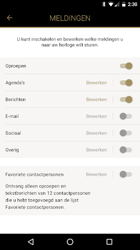 • Bepaal van welke apps u meldingen op uw smartwatch wilt ontvangen en selecteer de trillingsintensiteit.
