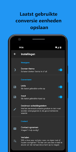 - Als u lang op de geconverteerde waarde drukt, kopieert u deze naar het klembord.