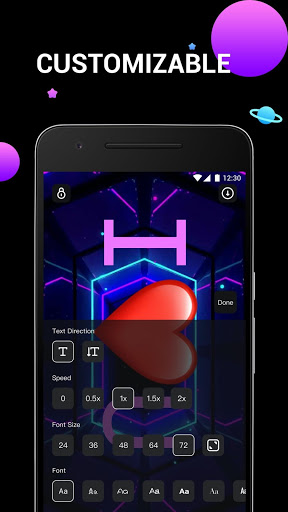 is een eenvoudig te gebruiken LED-scroller, voer gewoon Emoji of tekst in om uw bericht te personaliseren en besluit het te scrollen of te pauzeren. Draai uw apparaat in een LED-scrollende Marquee / LED-uithangbord.