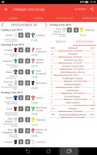 Haal de snelste resultaten en statistieken van voetbalwedstrijden in Spanje!
