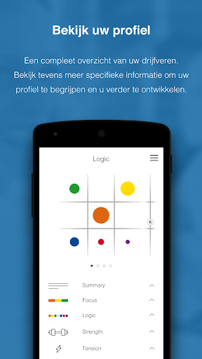 Als u een Management Drives vragenlijst heeft ingevuld dan krijgt u met de MD app toegang tot uw profiel en een wereldwijd netwerk van personen die ook een MD profiel hebben.