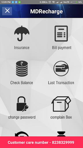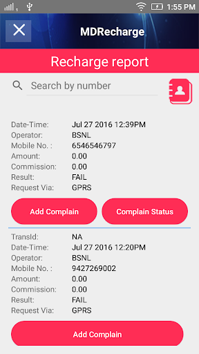 Recharge is app voor online recharge.it omvat Recharge-rapport, klachtdoos en de status ervan.