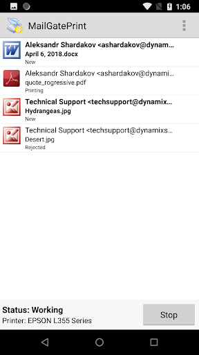 MailGateprint is Android-gebaseerde printserver, eenvoudig in te stellen en te bedienen. Het is gebaseerd op e-mailcommunicatie in plaats van cloudservice. Met Android-apparaat en een printer kunt u beginnen met het verstrekken van printdiensten aan iedereen - uw vrienden, familie, collega's, klanten en klanten, ongeacht waar ze zijn. Het enige dat ze moeten doen, is om een e-mail te sturen met bijlagen die moeten worden afgedrukt.