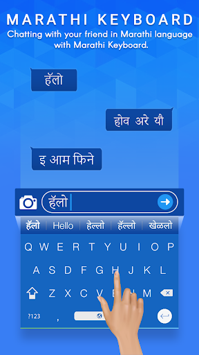 Marathi-toetsenbord werkt als standaard toetsenbord in Android-toetsenbord in Android-toetsenbord. Typen / sms'en in Marathi. Typ gewoon in het Engels en druk op de spatiebalk Uw Engelse woord wordt automatisch geconverteerd naar Marathi-script.