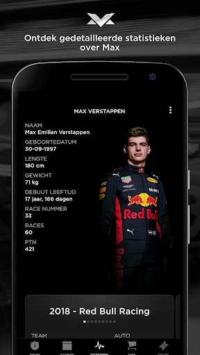 De Officiële Max Verstappen App is een exclusieve mix van alle content uit de wereld van Max. Deze app zorgt ervoor dat je nooit een officiële update van Max mist en brengt je dichter bij Max dan ooit, waarmee het een absolute must-have voor Max Verstappen fans is.