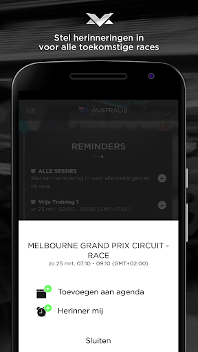 -De mogelijkheid om notificaties te krijgen van alle vrije trainingen, kwalificaties en races van Max Verstappen, zodat je geen live uitzending meer hoeft te missen