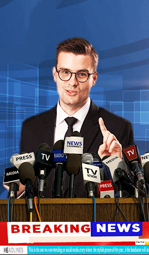 Media press conference photo editor 2020 app edits your photo like news caster man,anchor or some special man press conference photo.