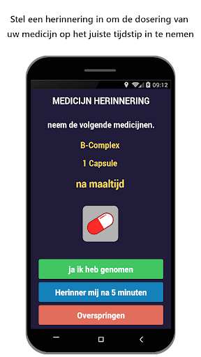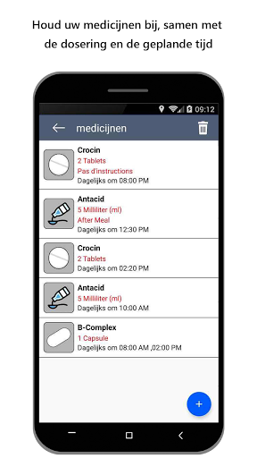 Voer eenvoudig uw medicijnnaam en -dosering in, selecteer het type medicijn, noteer eventuele instructies en stel schema's in van wanneer u ze moet innemen. De app waarschuwt u voor de tijd die u nodig hebt om uw medicatie in te nemen.