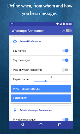 Berichtenlezer voor WhatApp, gebruik WhatApp-sms-berichten en speel ze af via de headsets of fietshelm of auto-media of mobiele telefoonspreker.