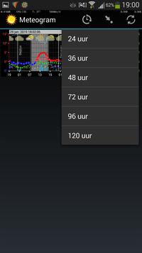 De duur van een grafiek kan worden ingesteld van 24 uur tot 120 uur. De lengte van de voorspelling is altijd 120 uur. Het onzichtbare deel kan getoond worden door de grafiek horizontaal te scrollen.