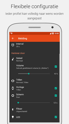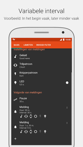 ★ Aanpasbare meldingen: volgorde, duur (hoe lang), herhaling (hoe vaak).