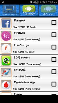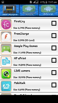 Features In App • Move apps to SD card Fast Speed . •• Move apps to phone internal storage Fast Speed. ••• SHow movable Apps. •••• Show app details: size , Which Memory. ••••• Open app. •••••• Select Mltiple Apps To Move.