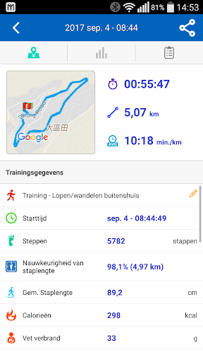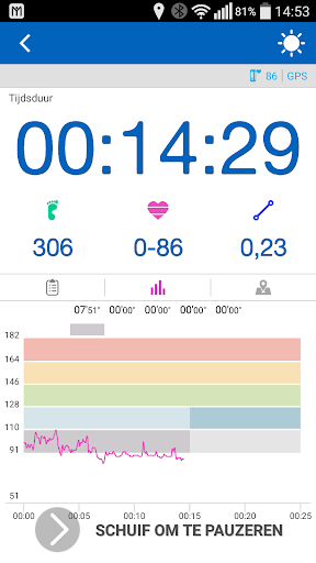 o Bekijk gedetailleerde statistieken/diagrammen van uw tempo, afstand, tijd, snelheid, hoogte en verbrande calorieën