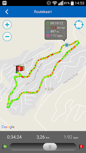 o Toon gegevens over snelheid en hartslag van elk gelogd punt op de routekaart