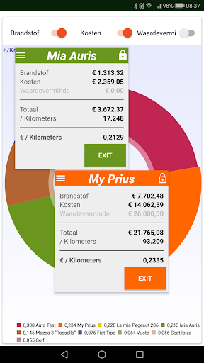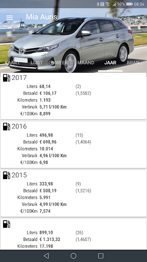 - Kan de gegevens importeren uit MyFuelLog, Fuelio, aCar, My Cars, Fuellog, Road trip (iOS), Fuel buddy, Carango, Drivvo, CSV