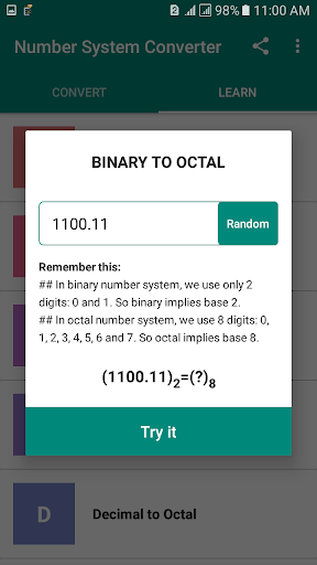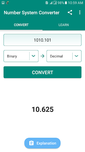 is the best app for engineering, computer science and IT guys. In this app, you can easily convert an integer or fractional number into the binary, decimal, octal or hexadecimal system. It's not only an educative tool, it's also a calculator and conversion tool.
