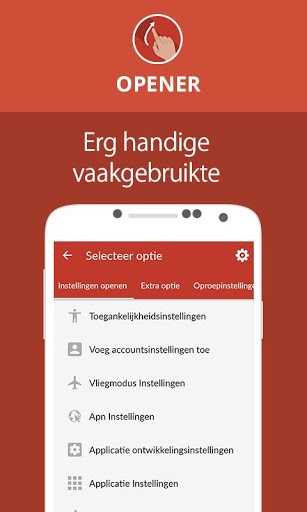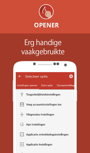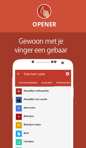 Opener is een simpele, snelle en betrouwbare app die werkt zoals jij wilt dat het werkt. Met het tekenen van een simpel gebaar op het startscherm laat de Opener app je geïnstalleerde apps opstarten zonder de lange route te hoeven volgen. En niet alleen dat, je hoeft zelfs geen snelkoppelingen op te starten. Opener geeft je toegang tot alle applicaties die je hebt op je toestel, daardoor kan de gebruiker elke applicatie zo instellen dat het opstart met het juiste gebaar op het startscherm.