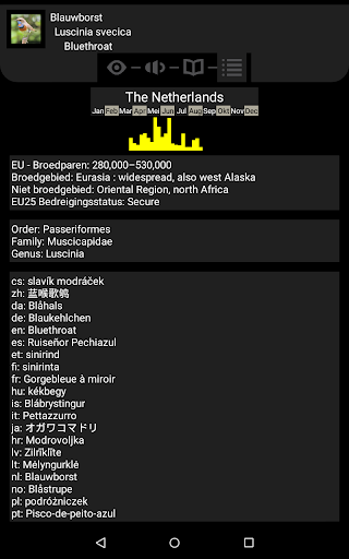 - Geluidsbestanden voor bijna alle van de 1144 vogels ( 130 MB-1.1 GB)