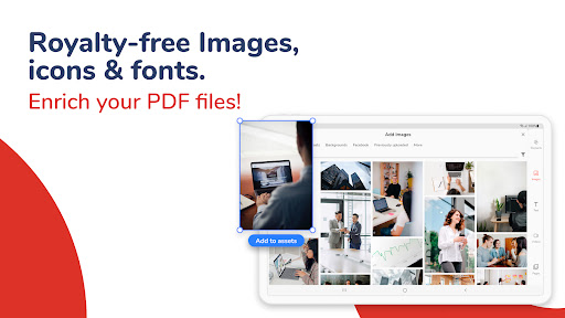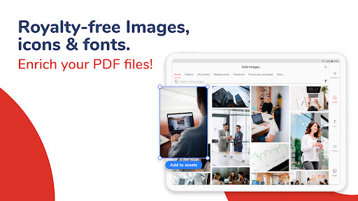 ROYALTYVRIJE BRONNEN: betaal niet voor individuele graphics of afbeeldingspakketten. Verrijk je pdf-bestanden met afbeeldingen van hoge kwaliteit en diagrammen zonder de app te verlaten: