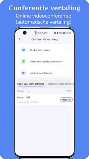 Deze APP bevat een compleet cloudconferentiesysteem. U kunt via deze APP een multinationale conferentie houden en de taal in de conferentie wordt in realtime vertaald.