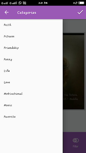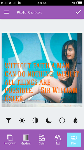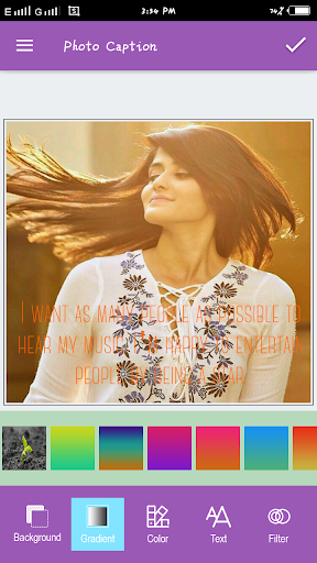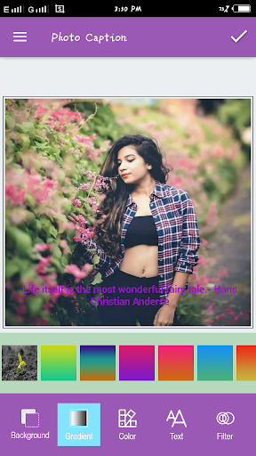 2. Selecteer een van aangepaste fotoschriften / citaten of maak uw eigen om op de fotoachtergrond te verschijnen.