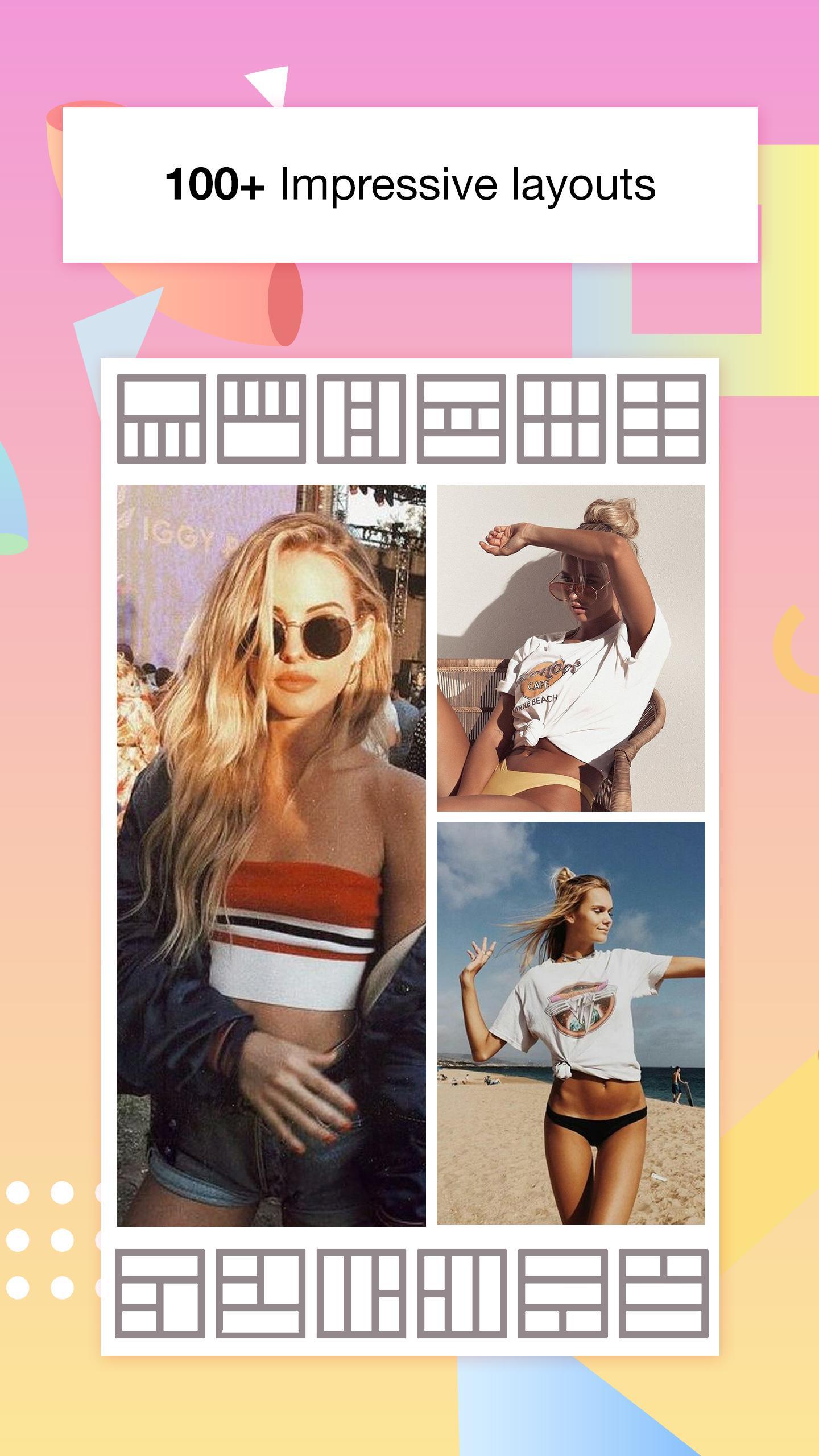 ✔ Shapes editor: helps to combine photos with multiple variations of shapes, textures and backgrounds.